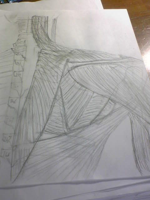 取りあえず一番下のでかい筋肉が広背筋(l.dorsi)。